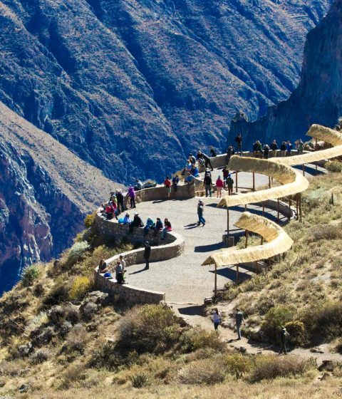 The colca canyon is Peru’s third most-visited tourist destination, located about 160 km (99 mi) northwest of Arequipa. With a depth of about (4160 meters 13728feet) it is one of the deepest canyons in the world. Its length is about 70 km (43 mi) before the Canyon there is a colorful Andean valley with pre-Inca rooted inhabitants, and towns founded in Spanish colonial times, still inhabited by decendents of Collagua and Cabana cultures. The local people maintain their ancestral traditions and continue to cultivate the pre-Inca stepped terraces, called andenes.