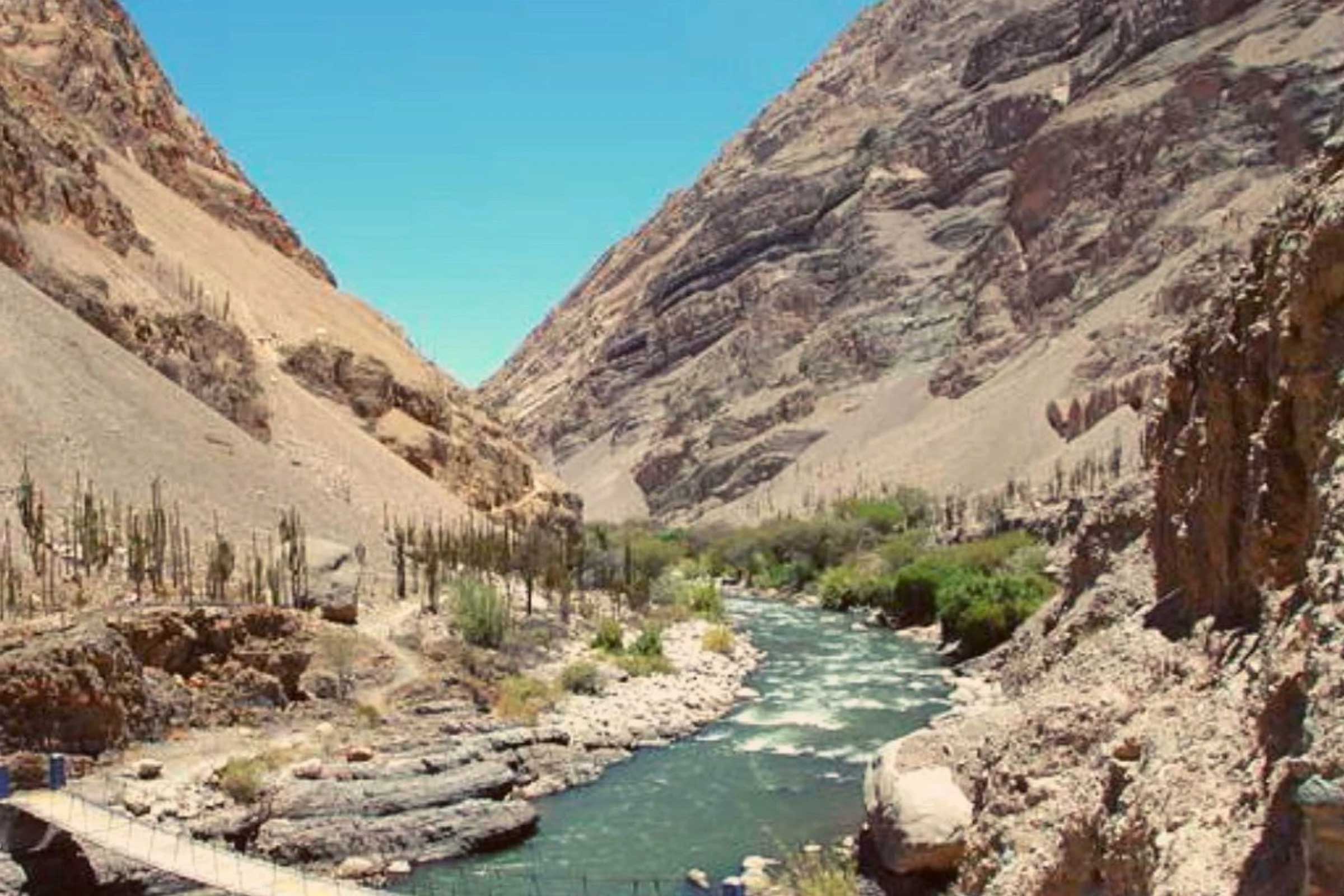 6:00 am We pick you up at your hotel, bus station or airport and then start our journey to the Cotahuasi Canyon toward south-west following the Panamerican Highway and passing through a beautiful valley named Majes where the local farmers grow a wide variety of vegetables (fruits, rice, wheat, potatoes, beans, corn, alfalfa and much more depending in the season) this tour show us a beautiful contrast of colors that only nature offers, after Corire and Aplao towns, (popular places where the locals based their food on shrimps) we will find a nice natural formation named the enchanted castle as well as the largest cactus forest in Peru, after we enjoy those places we continue to Chuquibamba town the perfect place for us to stretch the legs and enjoy a delicious local lunch, later on we have a big chance to observe herds of South American camelids such as llamas, Alapacas, Vicuñas and with bit of luck Guanacos and foxes, our route passes between spectacular mountain glaciers Solimana and Coropuna 6452 meter (considered the third highest mountain in Peru) later on we will arrive at Visque Grande (4670m) starting point of the pure downhill on our bikes 1990 meters of unevenness from the top to the bottom it takes about 2 hours with spectacular view of the terraces, water springs, deep cliffs, and more. Once we get to Cotahuasi we continue by our transport to the thermal baths, time to relax the muscles and after that great moment, we have dinner and then the tour guide is going to explain the agenda for the next day later on we go the hotel to rest and sleep.
