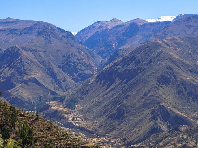 At around 12:00 pm after 4 hours of riding we arrive to Lari, where we will have an stop to rest and to get our snacks – box lunch later on we continue riding between the terraces, going down to the bottom of the Colca River to crossing it through a bridge and get the left side of the valley, then we ride uphill up to Pinchollo village (3400meters) where will stay in a basic accommodation, but in a nice green area surrounded by Dinner will be served around 7:00pm